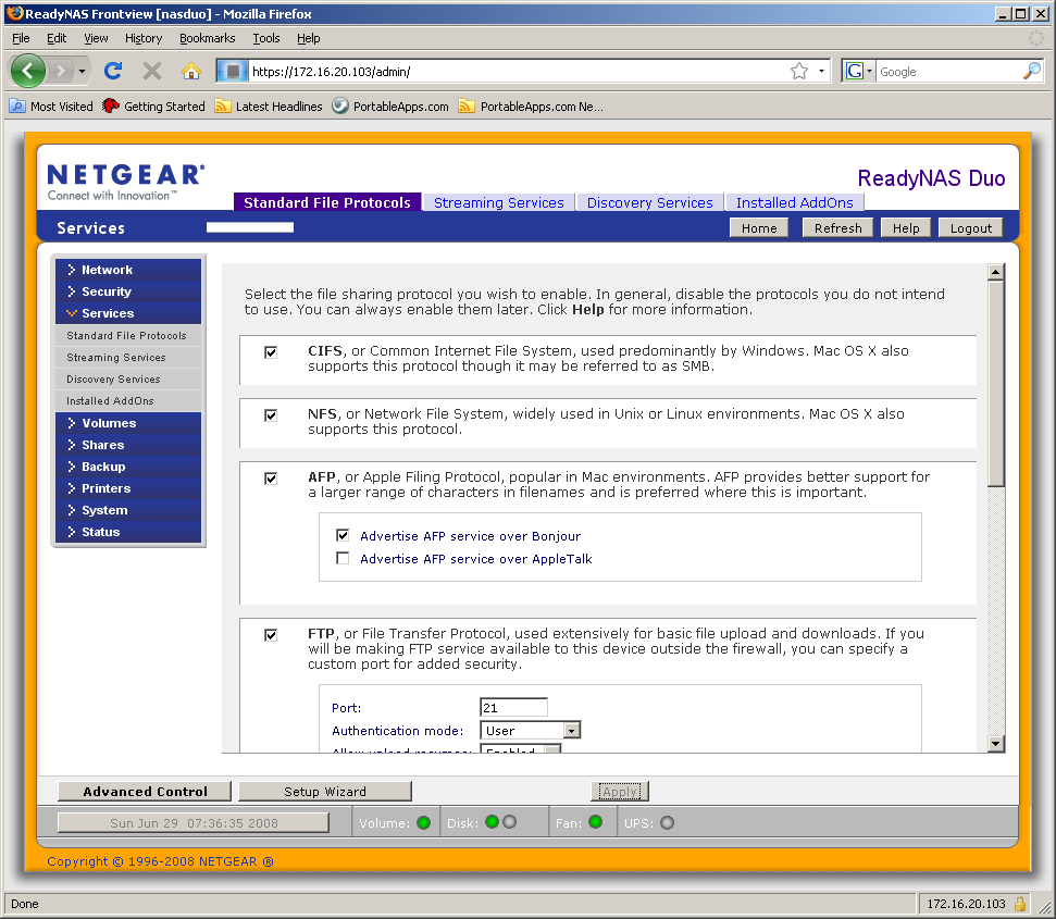 Кроме доступа к файлам по большинству современных протоколов, ReadyNAS Duo имеет также несколько дополнительных функций, которые будут полезны домашним пользователям.