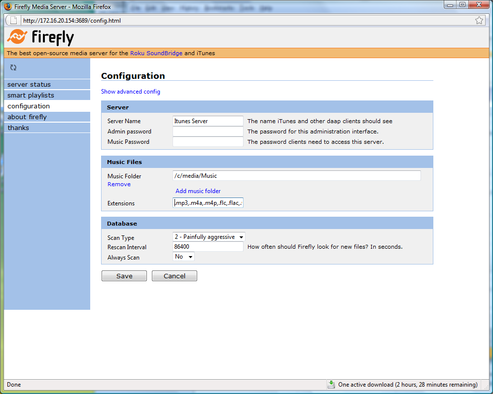 Штатные серверы для работы с мультимедиа представлены SqueezeCenter, iTunes, UPnP AV и Home Media Streaming Server. Первый используется для трансляции музыки и радио на устройства SqueezeBox. Комплектная версия вполне функциональна, но при необходимости можно скачать и установить расширенный вариант.