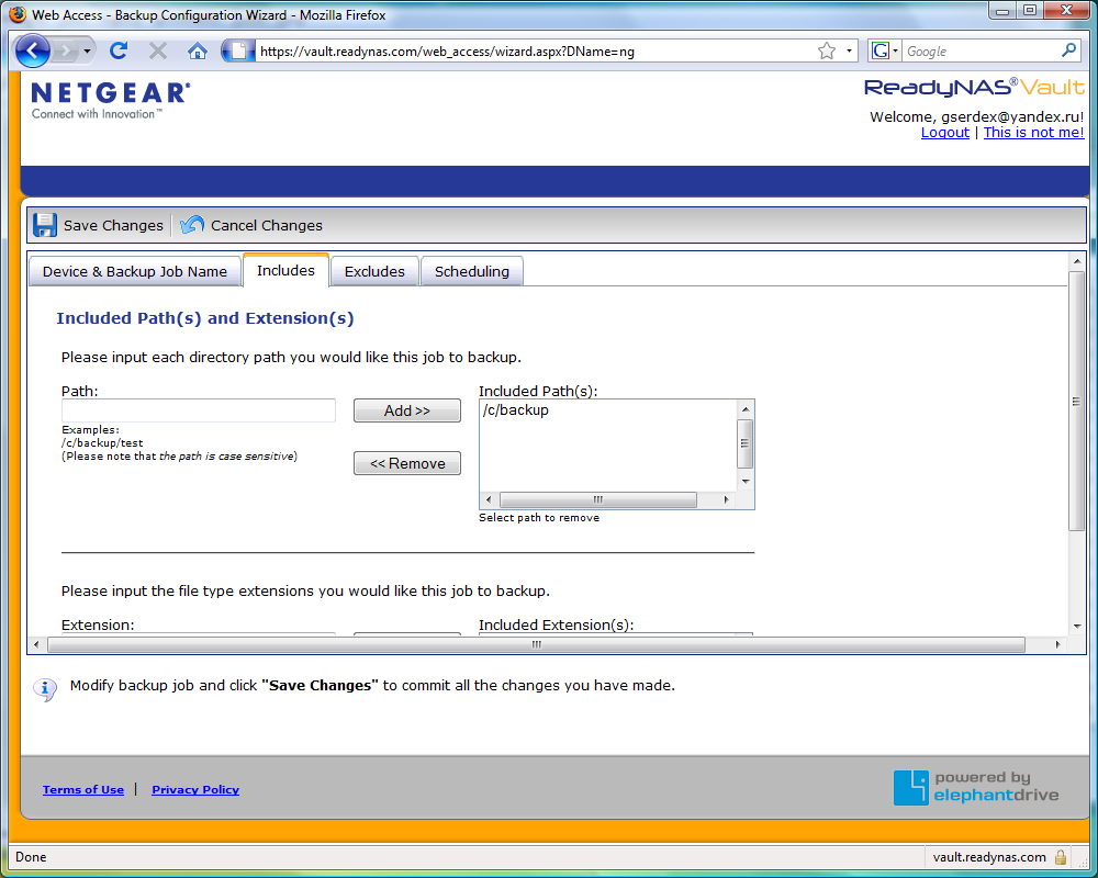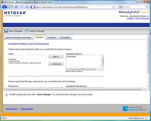 Еще одной возможностью для резервного копирования является поддержка он-лайнового сервиса ReadyNAS Vault. Попробовать его можно и бесплатно, а основные тарифы зависят от требуемого объема дискового пространства для домашнего пользователя составляют $5,95 за 5 ГБ и $0,5 за каждый 1 ГБ сверх этого в месяц. Зарегистрировать тестовый аккаунт можно прямо из Web-интерфейса накопителя. Собственно управление заданиями и данными осуществляется через Web-сайт сервиса.