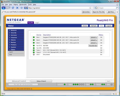 На отказ дисков накопитель реагирует стандартным способом — индикация, звуковой сигнал, сообщения в логах и по электронной почте. После замены неисправного диска автоматически начинается процесс ресинхронизации или же используется указанный запасным диск.