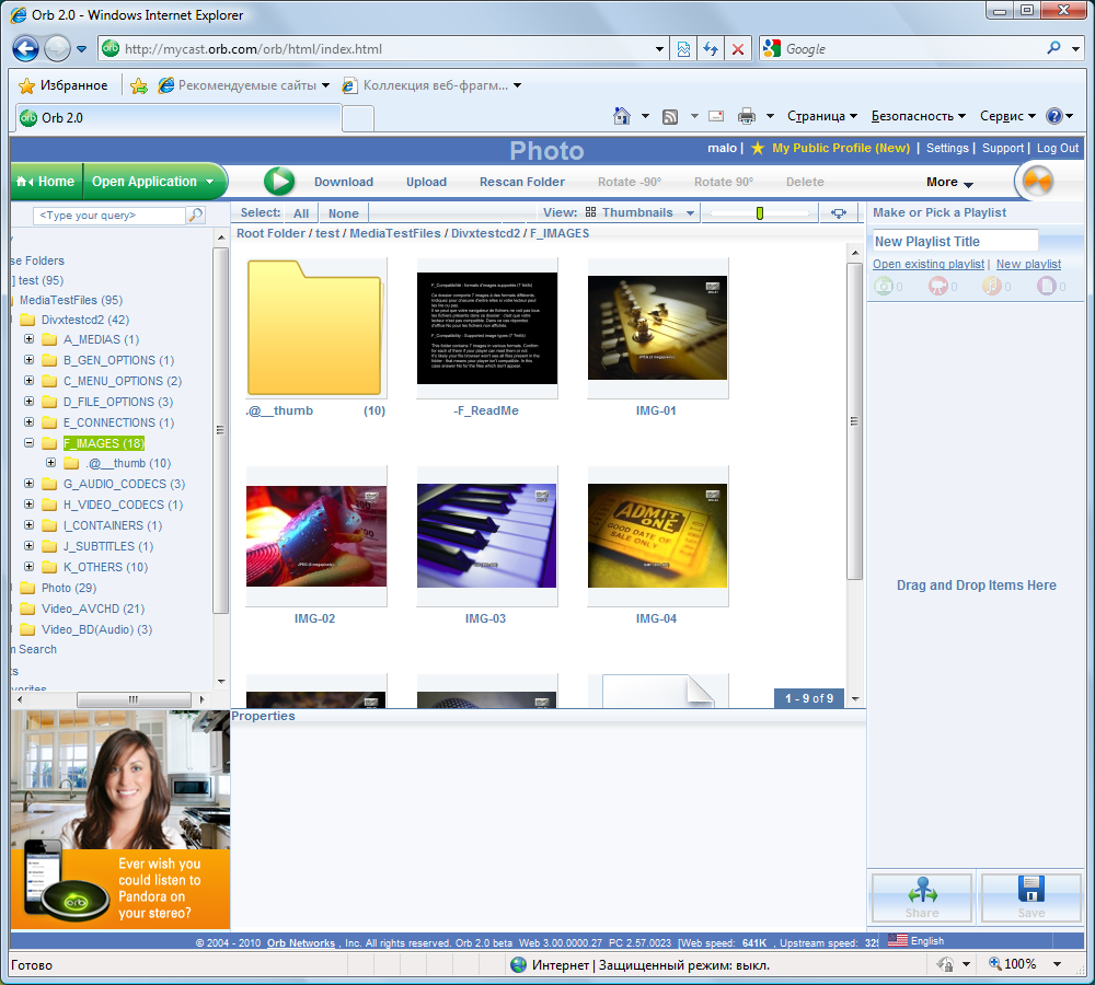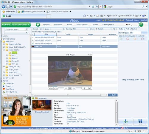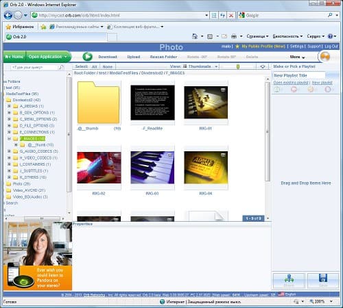 В прошлый раз мы уже упомянули про дополнительные сервисы работы с мультимедиа. Первый из них — Orb. После установки соответствующего модуля, нужно сделать еще две операции — создать аккаунт на сайте www.orb.com и указать папки, файлы в которых будут индексироваться. После всех этих действий пользователь получает доступ к своей мультимедийной библиотеке из любой точки мира через браузер: достаточно зайти на указанный сайт и ввести свои имя и пароль. Отметим, что этот сервис бесплатный, но один аккаунт можно использовать только для одного сервера. Кроме этого, те же файлы «раздаются» и по протоколу DLNA/UPnP AV. Основным плюсом данного сервиса является простота настройки — от пользователя не требуется настраивать роутер или кодеки.