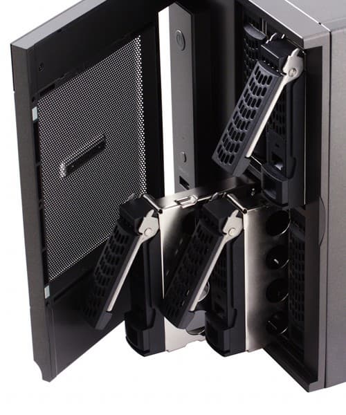 Появление модели на шесть дисков в линейке Ultra выглядит достаточно логичным. С распространением медиаконтента, особенно высокого разрешения, четырех винчестеров требовательным пользователями может и не хватить. Так что Ultra 6 позволит им создать отказоустойчивый массив полезным объемом около 10 ТБ с дисками по 2 ТБ. Наличие именно шести отсеков тем более актуально, поскольку производитель решил не использовать в этой серии порты eSATA для подключения дополнительных накопителей.