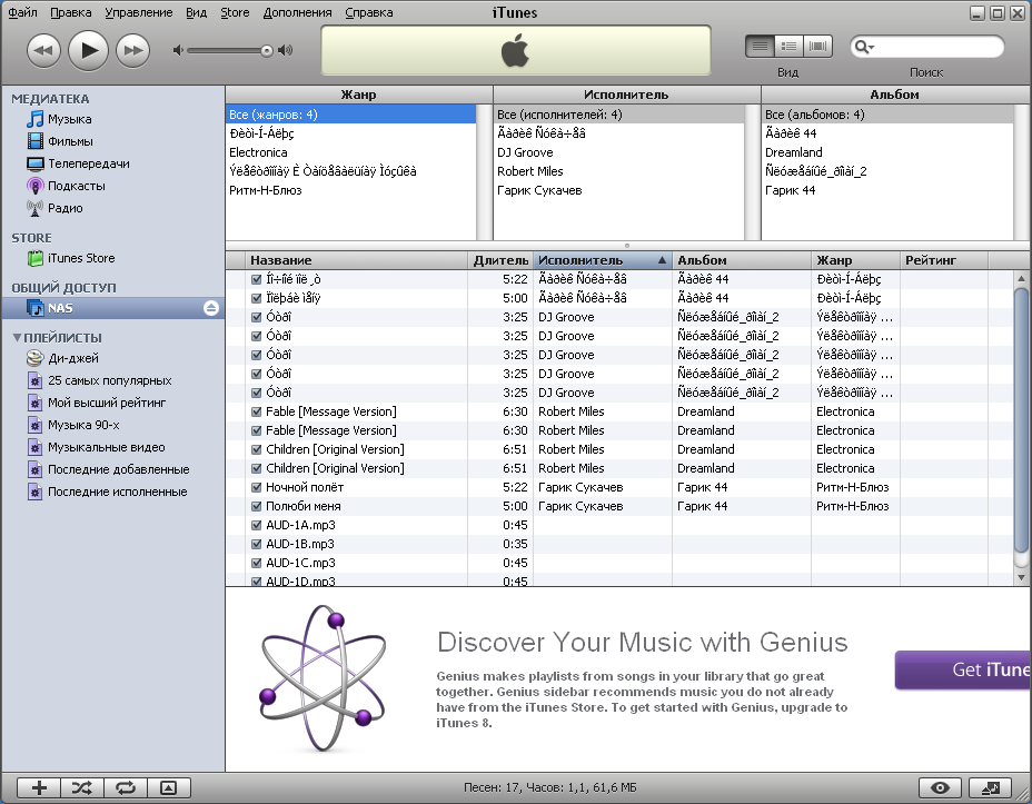 Сервер iTunes не имеет каких-либо оригинальных решений. Поддерживает индексацию mp3 файлов из единственной директории и понимает русские теги только если они записаны в Unicode.