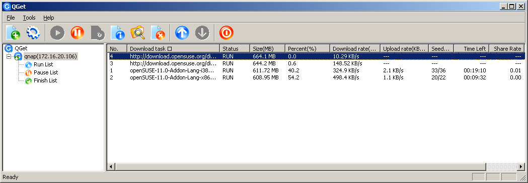 QGet является клиентской программой для управления менеджером загрузок на накопителе. При этом она может управлять сразу несколькими устройствами. Штатный менеджер позволяет загружать файлы по протоколам FTP/HTTP/BitTorrent. При этом работать можно только от имени администратора. Более подробно эта функция будет рассмотрена позже.
