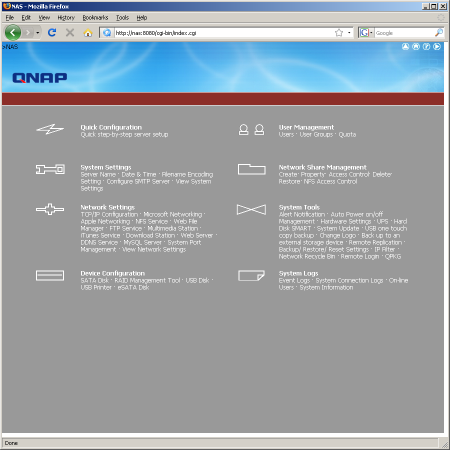 Web-сервер позволяет создавать достаточно сложные сайты, благодаря наличию PHP4 и SQLite. А устанавливаемые через QPKG системы управления значительно упрощают расширение его возможностей.