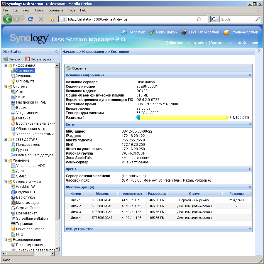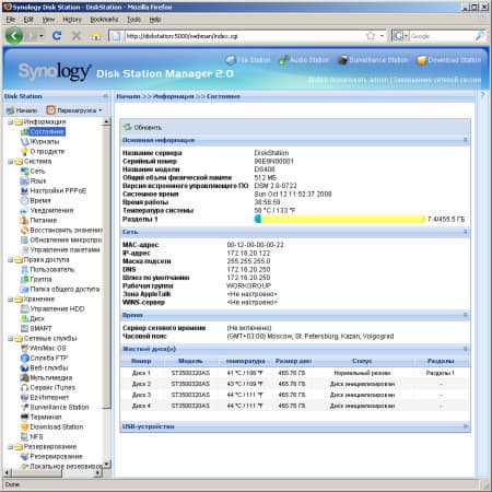 Так что, как обычно, посетуем только на относительно высокую стоимость накопителей, повышающую привлекательность альтернативы в виде обычного персонального компьютера с несколькими дисками. Но повторим еще раз, что по простоте настройки, компактности, удобству использования и энергопотреблению у DiskStation пока нет конкурентов.