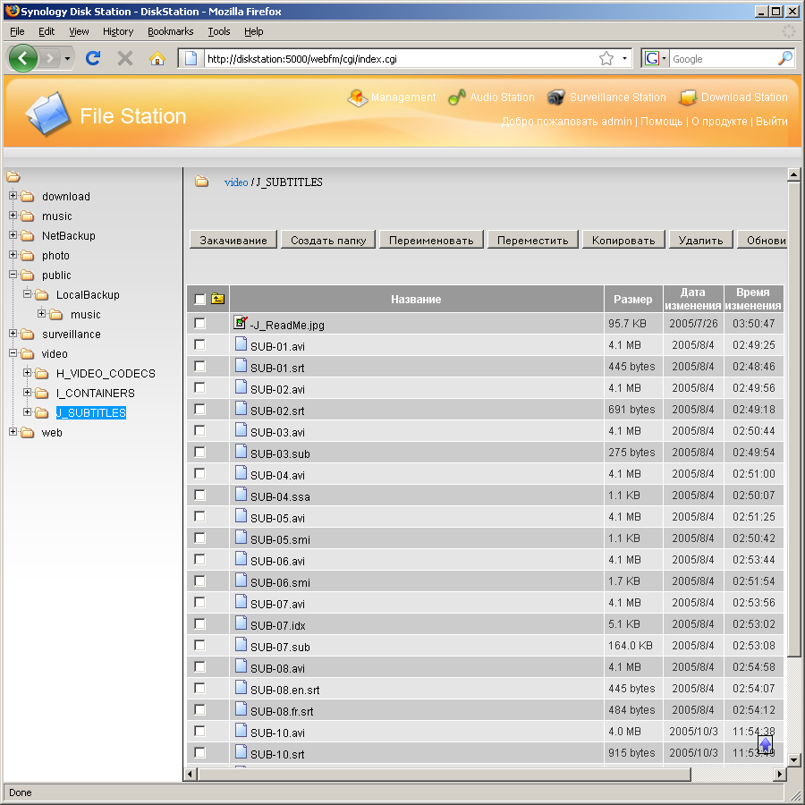 - File Station — полноценный доступ к файлам накопителя через браузер. Возможны все операции — скачивание и загрузка файлов, копирование и перенос файлов, изменение названий, работа с директориями. В сочетании с шифрованием —это один из наиболее удобных удаленных способов доступа к накопителю;