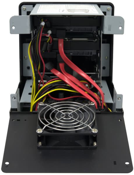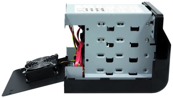 Для сборки системы необходимо открыть крышку и установить от одного до четырех жестких дисков. Некоторые сложности могут вызвать многочисленные кабели — не понятно, почему производитель не реализовал в новой модели подключение без кабелей с использованием дочерней платы с установленными совмещенными разъемами SATA и питания. Впрочем, процесс сборки не частый, так что потеря нескольких минут не очень существенна.