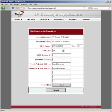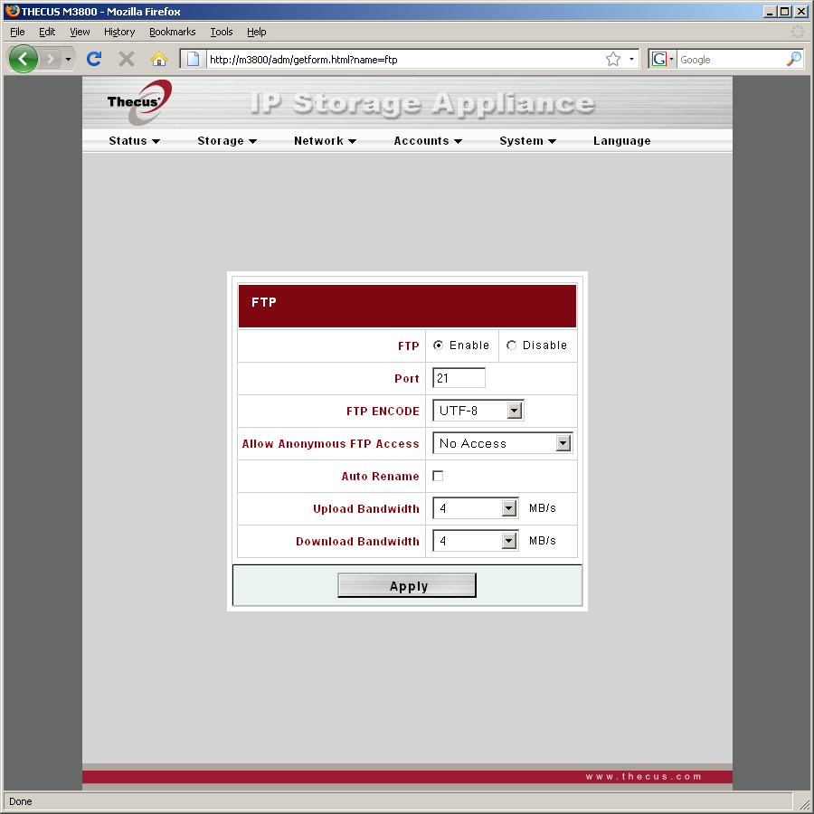 Не очень к месту в этой группе и настройка заданий по сетевому резервному копированию. Поддерживаются как сервера от Thecus, так и стандартные FTP сервера. В каждом задании также указывается исходная папка и расписание работы.