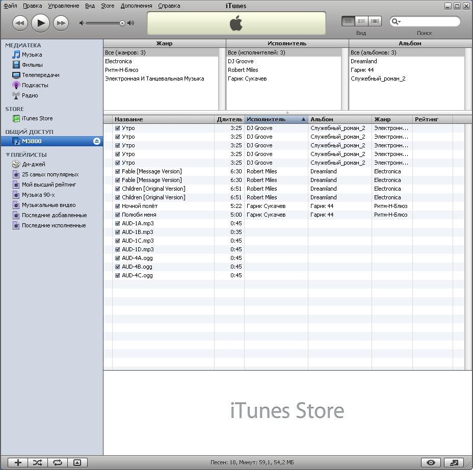 Установленный сервер iTunes интересен тем, что можно указать использование CP1251 для восьмибитной кодировки тегов в MP3, что в результате позволит ему правильно индексировать и этот вариант кодировки и Unicode. Поддерживаются только файлы формата MP3 и только из системной общей папки Music.