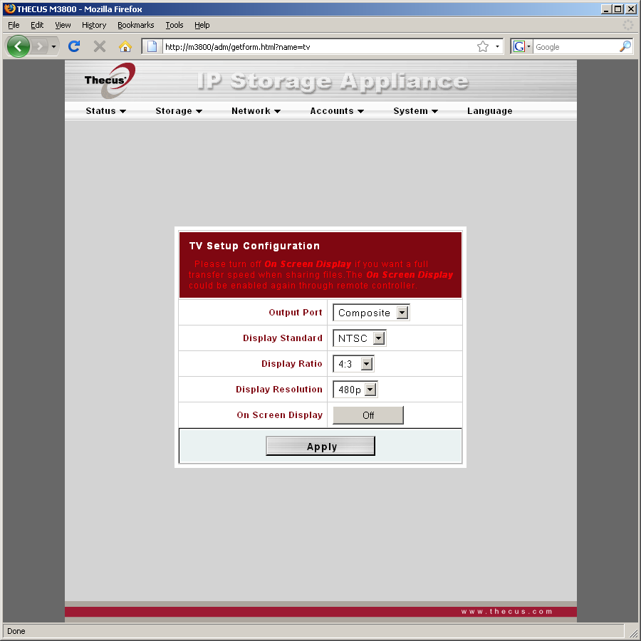 Thecus M3800 сегодня представляет собой неплохой сетевой накопитель с большим набором функций и стандартной платформой x86 и не выделяющийся какими-либо характеристиками медиаплеер с поддержкой некоторых форматов видео высокого разрешения.