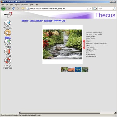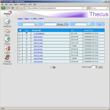Медиасервер основан на технологиях компании Macrovision (ранее Mediabolic). Он позволяет гибко выбирать индексируемые для общего доступа папки. Что касается форматов и совместимости, то по данным показателями среднее положение — JPEG/BMP/PNG для фотографий, MP3/WMA/AAC/MP4/WAV для музыки, AVI/MPEG/WMV для видео. Еще раз напоминаем, что возможность просмотра данных форматов существенно зависит и от используемого сервера.