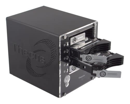 Сегодня у нас на тестировании сетевой накопитель от компании Thecus, рассчитанный на установку четырех SATA-дисков. По этому параметру его можно отнести к высшему уровню устройств для SOHO и дома. Большее количество дисков может быть только в серьезных стоечных системах (если не считать нескольких моделей на пять дисков). Использование четырех дисков на сегодняшний день может обеспечить максимальную емкость системы 4 ТБ, если не требовать надежности, и 3 ТБ, если использовать RAID5. Кстати и поддержка этого типа массивов также является привилегией рассматриваемого типа устройств, поскольку он требует минимум трех дисков.