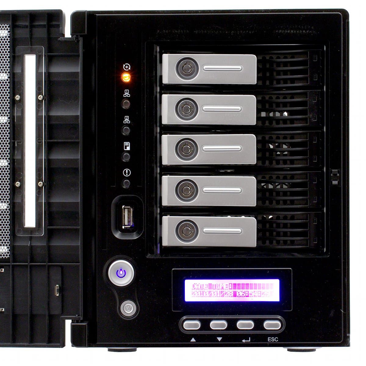 Но сегодня мы рассмотрим N5500 — классического представителя топовой линейки с наиболее производительным процессором и возможностью установки пяти жестких дисков. Также в линейке присутствуют модели N7700 и N8800, отличающиеся числом отсеков для дисков и объемом оперативной памяти.