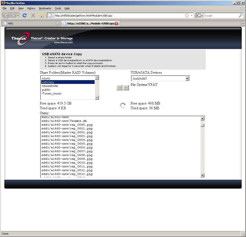 Четвертый модуль называется Bi-directional USB copy module и используется для копирования данных между внутренними папками и внешними накопителями, подключенными к устройству. После выбора источника и получателя, необходимо указать направление копирования. Больше никаких опций не предусмотрено. В частности, используются именно основные общие папки, а не их поддиректории, что не всегда удобно.