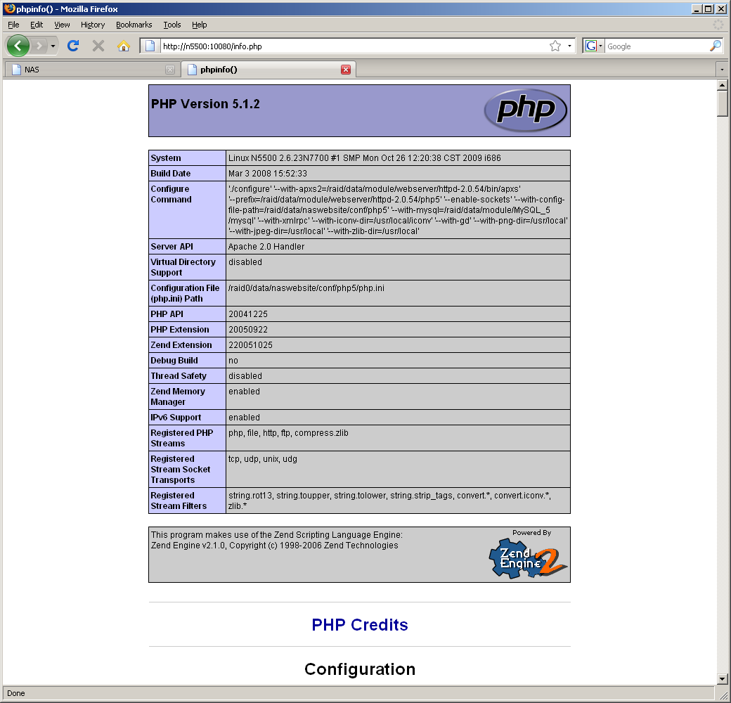 Он позволяет пользователю организовать на базе сетевого накопителя дополнительный сервер, работает с использованием штатного Apache, но на других портах. Рабочая директория доступна через общую папку naswebsite, в которой находятся не только собственно страницы сервера, но и полный набор конфигурационных файлов.