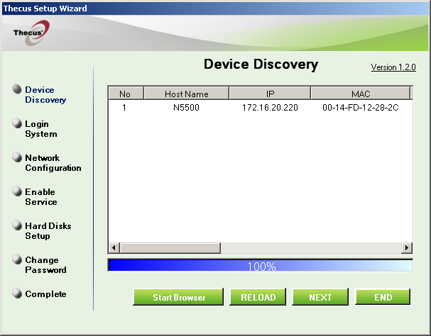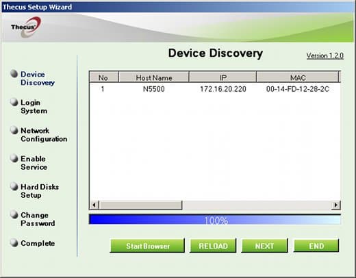 Тем не менее, на начальном этапе можно воспользоваться программой Thecus Setup Wizard для установки некоторых параметров устройства — сетевого адреса и имени, а также пароля администратора. В отличие от ранее встречавшихся программ, она обязательно требует установки, а дистрибутив неимоверно «раздут» из-за включенного в него пакета .NET и прошивки одной из древних моделей. Видимо этому вопросу производитель внимания уделить не успел.