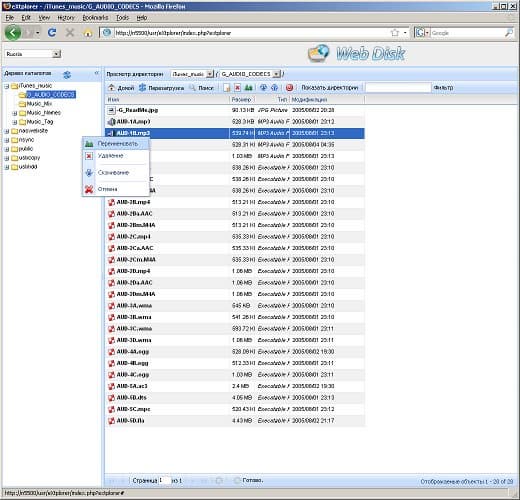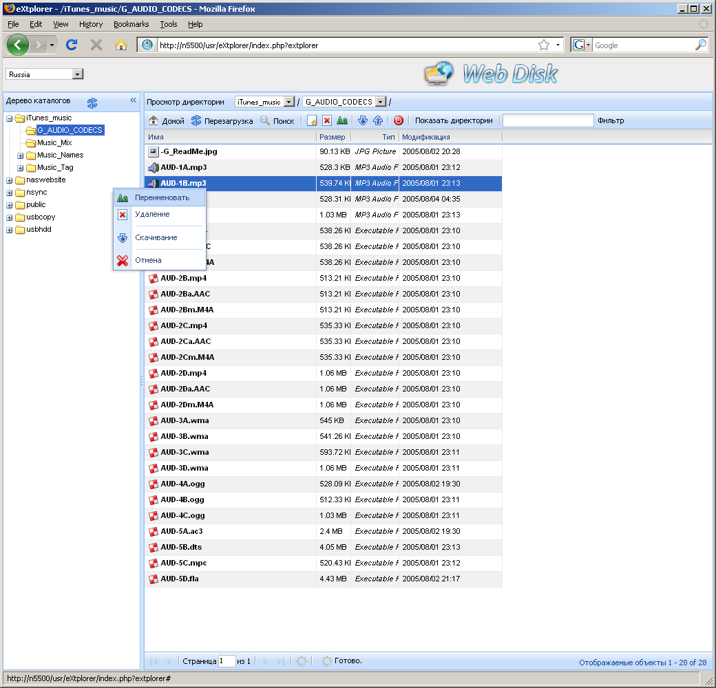 Присутствие функции по работы с файлами на устройстве через браузер становится уже стандартной возможностью у большинства сетевых накопителей. Не стала исключением и рассматриваемая модель. «Велосипед» изобретать не стали, а просто использовали готовый пакет eXtplorer, основанный на php. Так что возможностей здесь много и обеспечивается полноценная работа с файлами и директориями, включая загрузку их на накопитель с других серверов. Неожиданно реализован перенос и копирование — через технологию Drag-and-Drop, а не привычными пунктами меню.