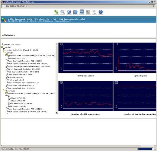 Для eMule в основном интерфейсе есть только указание папки для загрузки файлов. Клиент — программа aMuled — имеет собственную функциональную страницу для работы с этим сервисом. На ней можно установить множество параметров, заниматься поиском файлов, управлять серверами, смотреть статистику работы и многое другое.