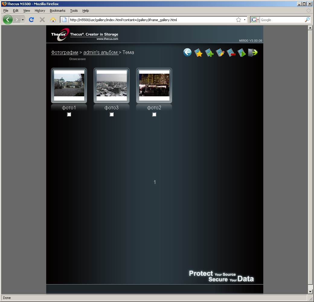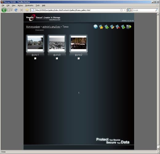 Несмотря на ориентацию скорее на недомашнее применение, есть в N5500 и несколько медиасервисов. В частности, доступный из главного меню «Фотоальбом» помогает через браузер организовывать и просматривать наборы фотографий. Возможностей у него не очень много, так отсутствует отдельная база пользователей и возможность ограничения доступа.