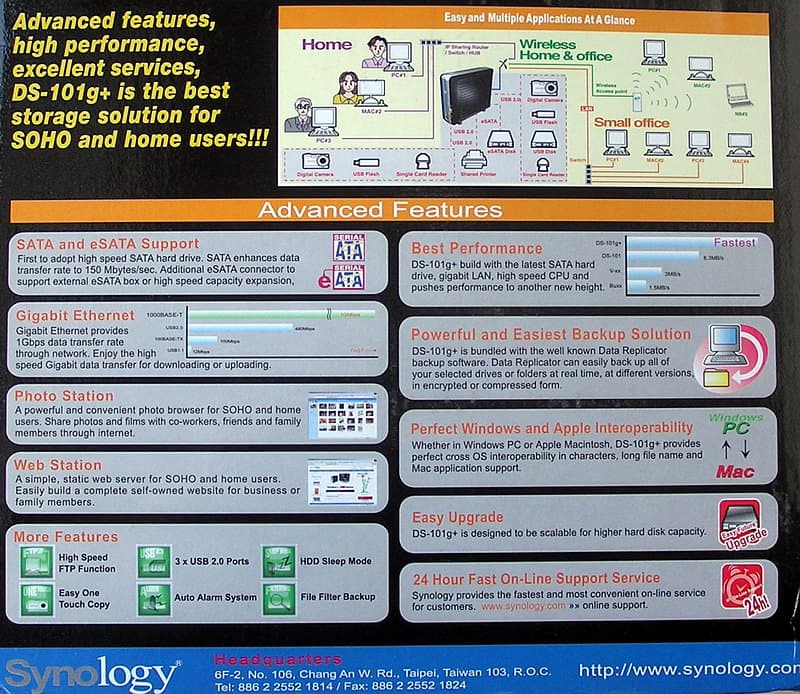 Одним из первых (хотя и не самых свежих) сетевых накопителей с поддержкой гигабитного Ethernet в нашу тестовую лабораторию попал контейнер Disk Station DS-101g+ от не самого раскрученного на российском рынке, хотя известного в мире производителя — тайваньской компании Synology.