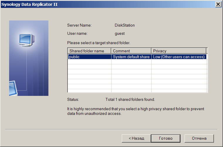 - данные Windows ПК резервируются на DS-101g+ (при помощи утилиты Synology Data Replicator II, см. ниже);
