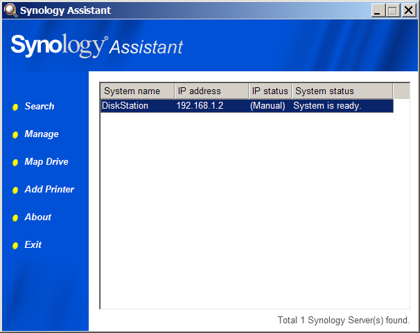- утилита управления Synology Assistant (см. скриншот 1, скриншот 2 и скриншот 3);