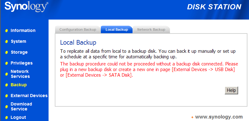 - данные на DS-101g+ резервируются на диски с интерфейсом USB/eSATA.