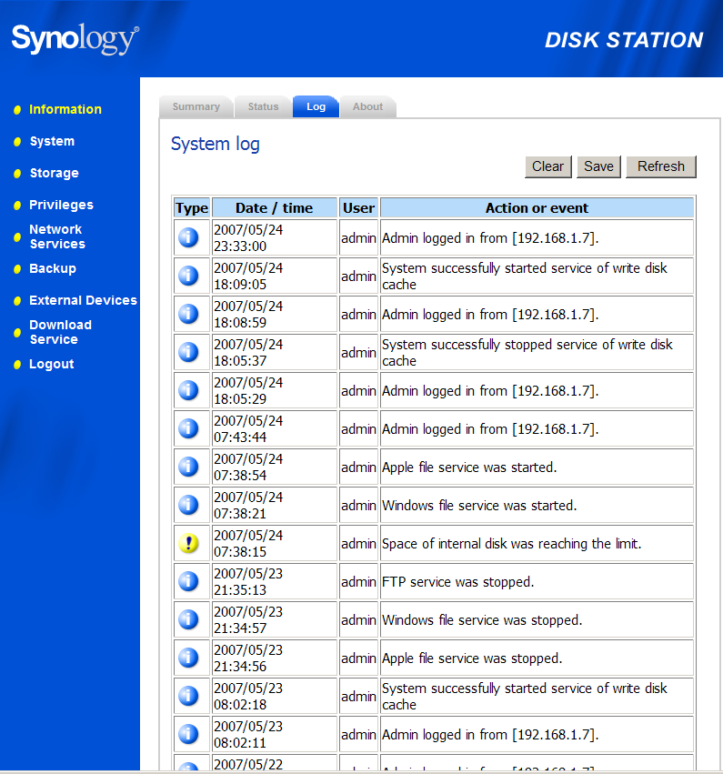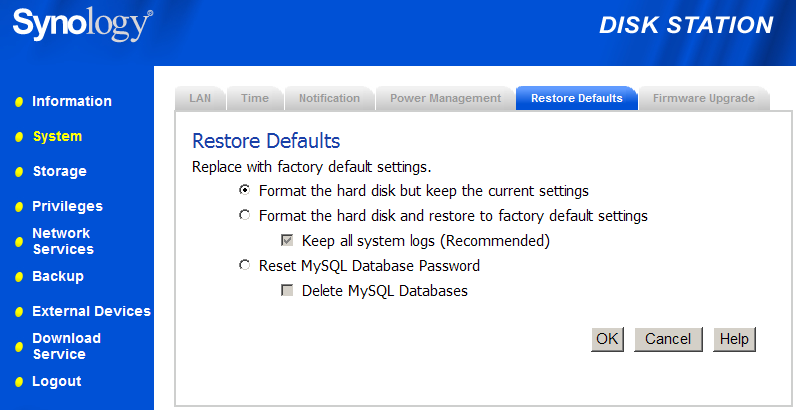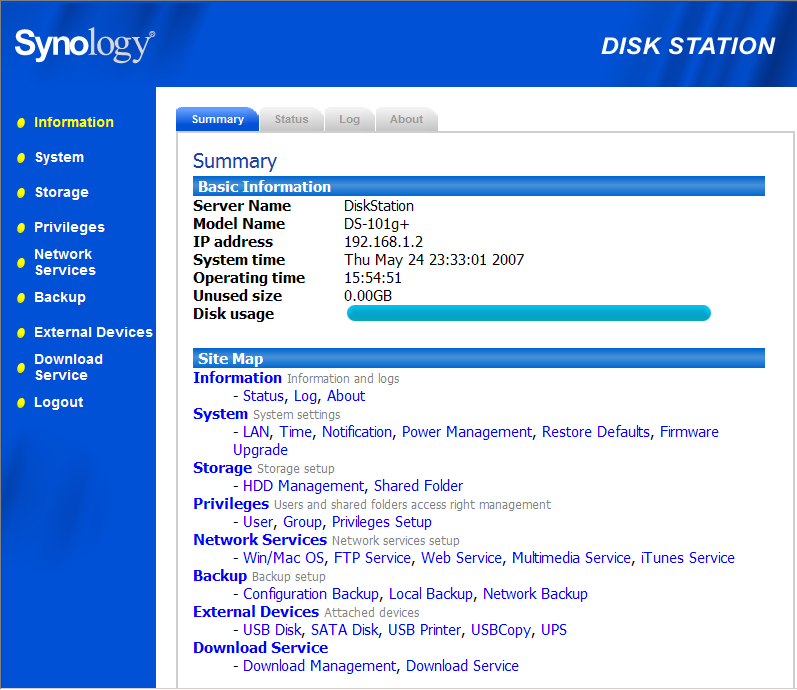 Что до встроенного ПО (полный набор красноречивых скриншотов для интересующихся подробностями: 01, 02, 03, 04, 05, 06, 07, 08, 09, 10, 11, 12, 13, 14, 15, 16, 17, 18, 19, 20, 21, 22, 23, 24, 25, 26, 27, 28, 29, 30), то как уже отмечалось, назначение и конкуренты обусловливают его функциональность, поэтому оно похоже на ПО большинства других NAS-устройств и отличается только перетасовкой карт в колоде, то бишь пунктов меню. Не сказать что последняя прошивка пошла на пользу логичности его организации — разметку диска, например, не сразу догадаешься искать в System / Restore Default, меню Storage кажется более подходящим местом для утилиты форматирования, а Shared Folders из последнего напротив скорей положено обитать в Privileges — впрочем, может быть это дело вкуса и привычки.