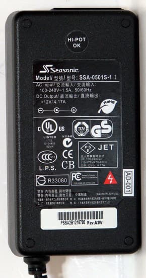 брошюрка с которым на 13-ти языках (включая русский) имеется внутри наряду с CD с ПО, 12-вольтовым адаптером питания на ток 4,17 А от самой SeaSonic, фурнитурой для установки жёсткого диска и двухметровым патч-кордом.