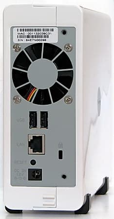 На заднем торце также всё по списку: вытяжное отверстие слегка подвывающего в работе 50-мм вентилятора, еще 2 разъёма USB, Ethernet-порт, кнопка RESET, отверстие под противоугонный троссик и разъём питания.