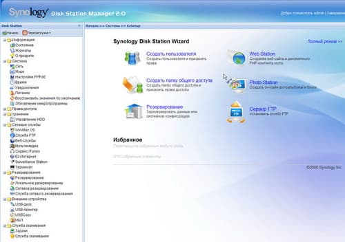 В невнимании к пользователю Synology не упрекнёшь — обновления ПО случаются не реже раза в пару месяцев, и что особенно приятно, значительное внимание уделяется не только исправлению ошибок, коих не так много, но и в гораздо большей степени добавлению новых функций. В протестированной инкарнации прошивки (DSM 2.0-0637 Build Date: 2008/06/17, распространяется на весь актуальный модельный ряд) управляющее ПО имеет базирующийся на AJAX Windows-образный интерфейс — красивый, удобный, гибкий и так далее, с прочими эпитетами, присущими технологиямW eb 2.0.