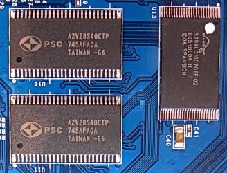 - два 128-Мбитных SDRAM чипа PSC A2V28S40CTP;