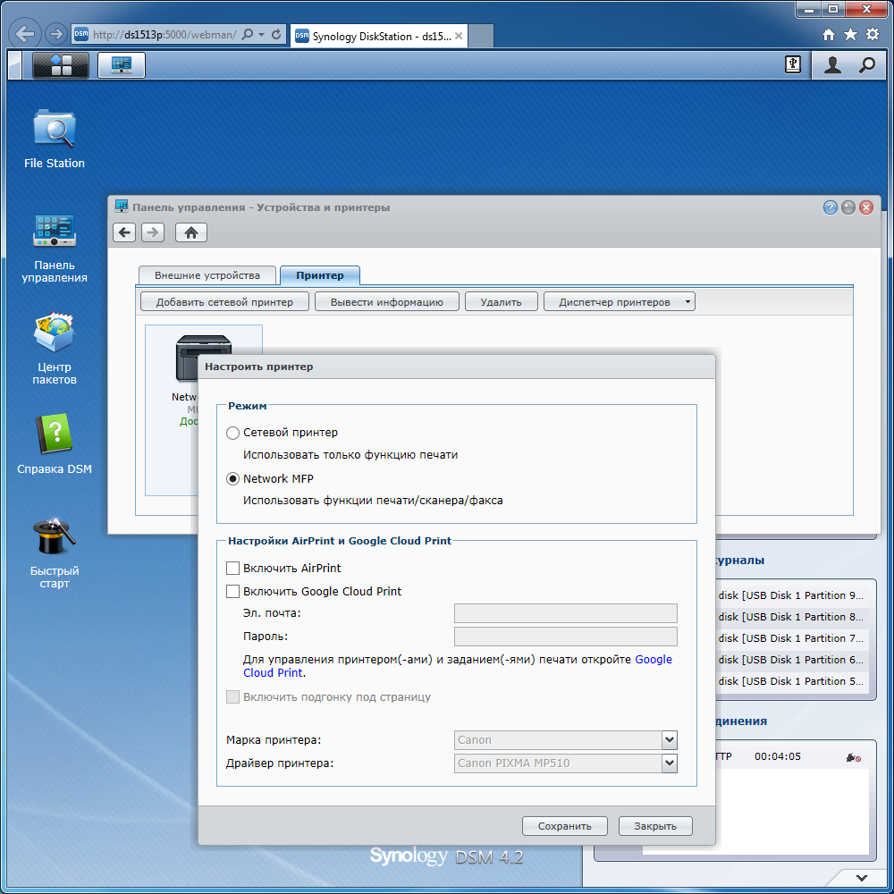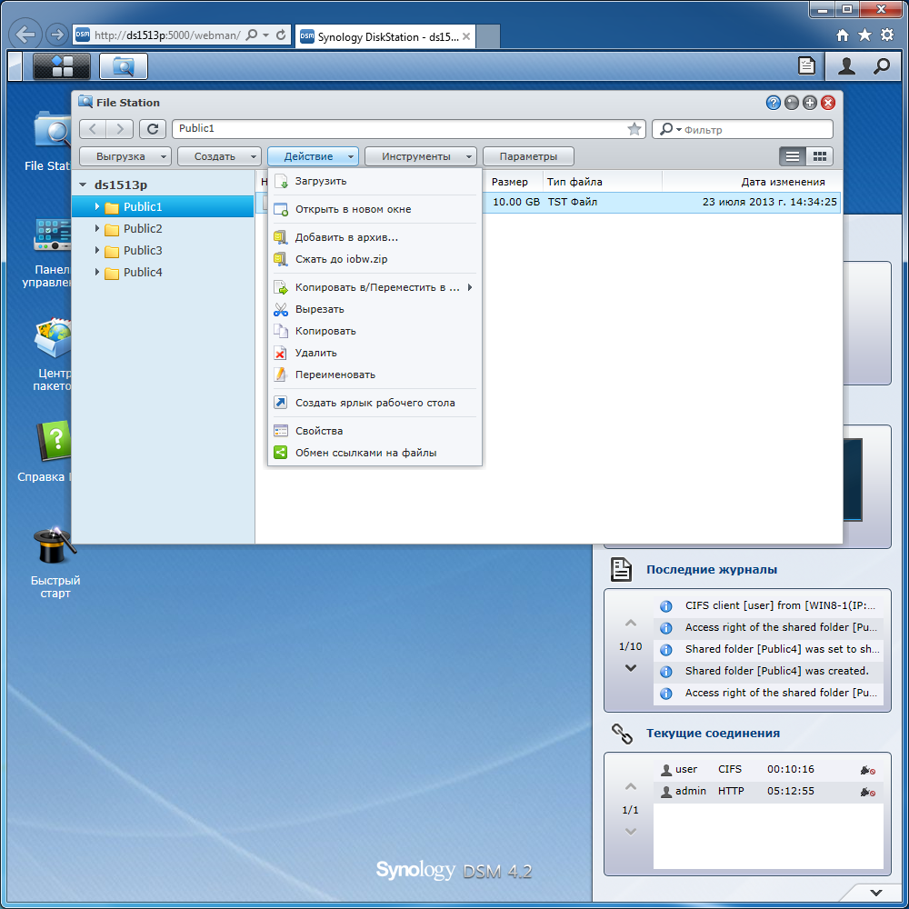Отдельно стоит упомянуть модуль File Station, который позволяет полноценно управлять файлами через браузер, работать с архивами, монтировать удаленные папки и образы ISO, предоставлять удаленный доступ к документам по прямым ссылкам.