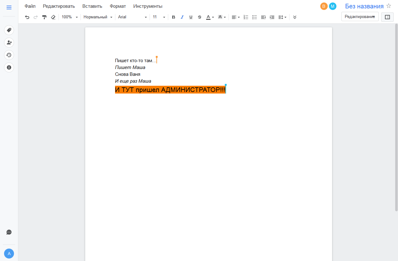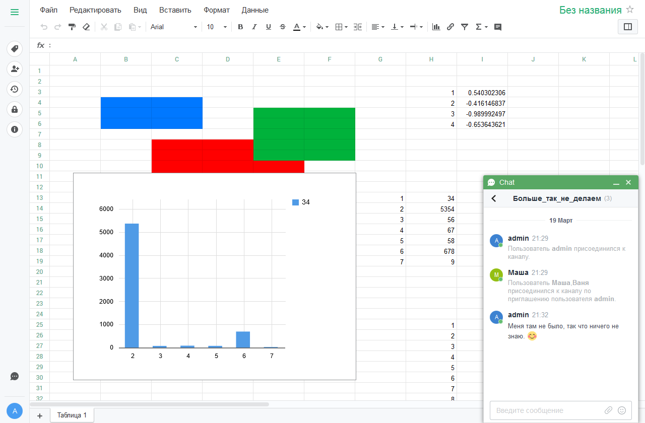 Встроенная система обмена сообщениями, реализованная в модуле Chat, позволяет организовать оперативный обмен информацией между сотрудниками. Например, окошко чата может отображаться поверх совместно редактируемого документа.
