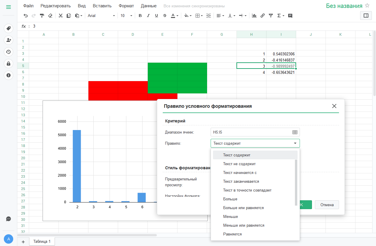 При работе с текстовыми документами реализованы такие привычные операции как поиск и замена, применение стилей, выбор формата оформления текста, вставка изображений, таблиц, ссылок, фигур и диаграмм. Для таблиц есть математические операции и формулы, вставка графиков, выбор оформления ячеек и текста (включая правила условного форматирования), добавление иллюстраций и другие популярные функции.