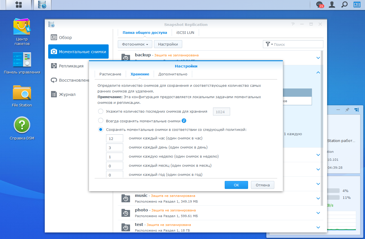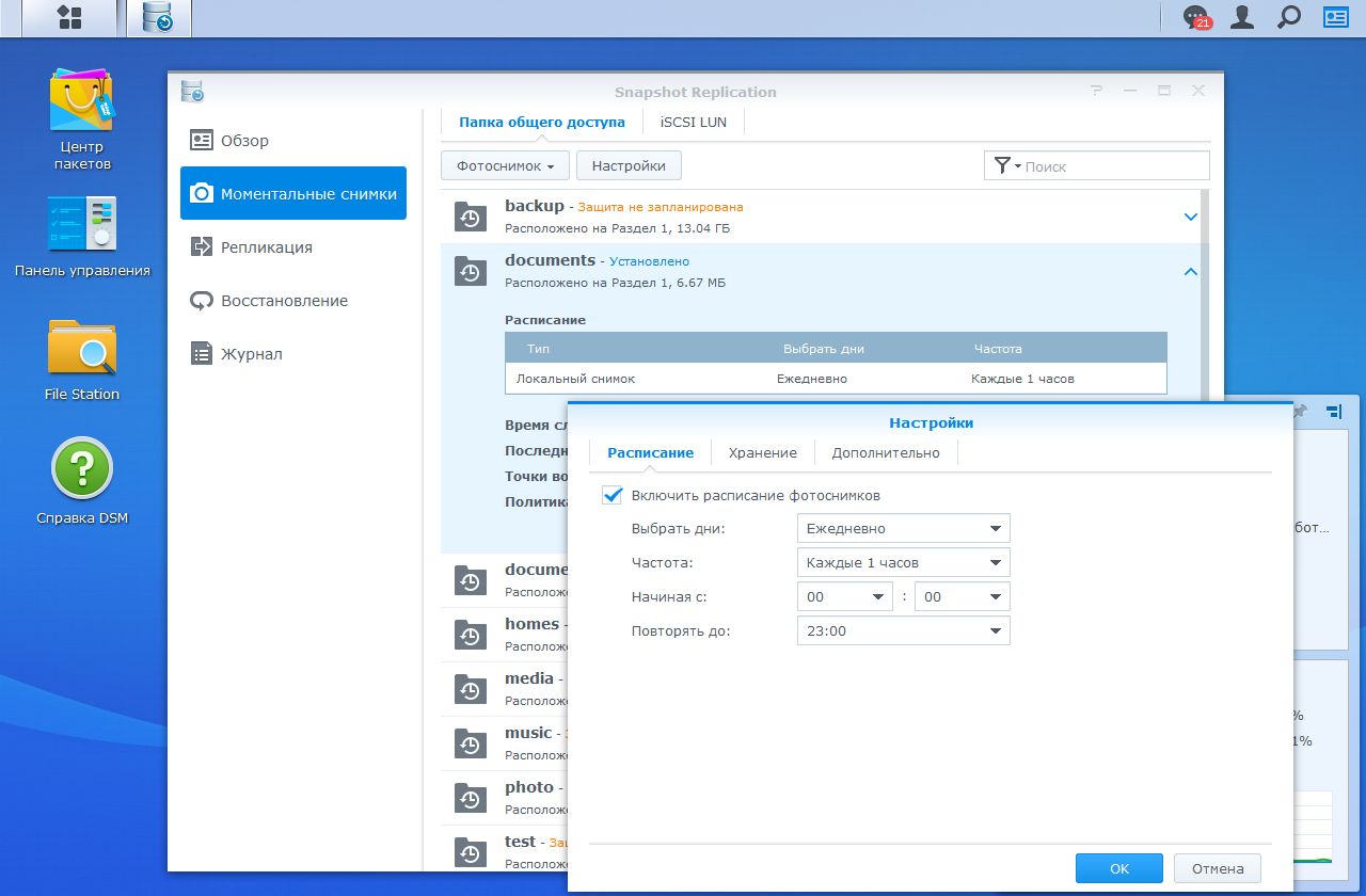 В дополнение к средству резервного копирования Hyper Backup, компания предлагает воспользоваться функцией моментальных снимков, доступной на файловой системе Btrfs. Плюсом использования снимков является максимальная скорость создания копий независимо от объема исходных данных. Основным вариантом использования является корпоративный сегмент, где предъявляются повышенные требования к надежности хранения данных и скорости восстановления.