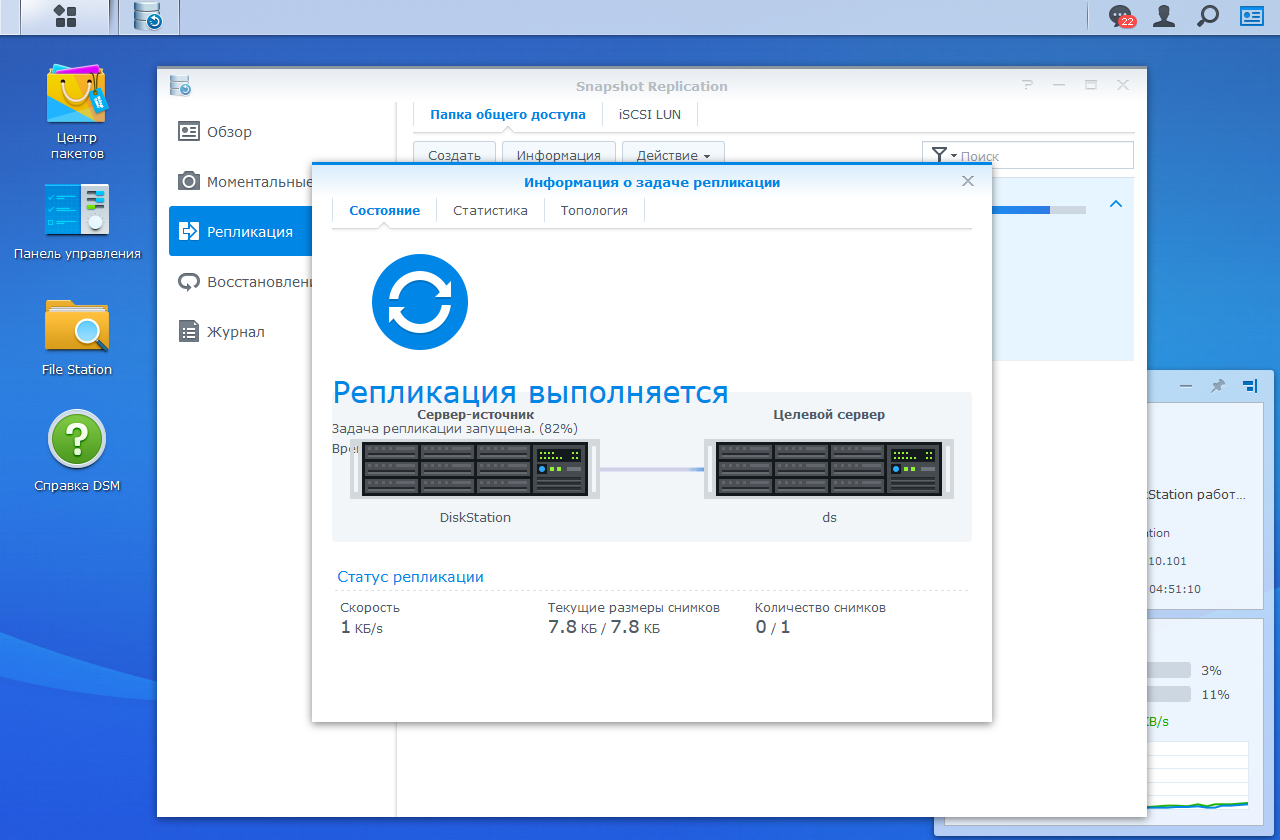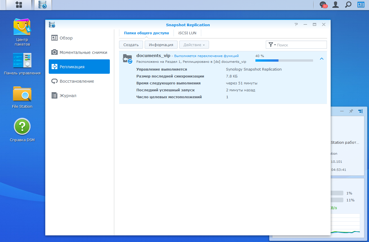 Кроме того, в этом же пакете предусмотрена функция репликации общих папок на другие тома этого же устройства, по сети или через Интернет на другие сетевые накопители. При этом на удаленном устройстве общий ресурс будет работать в режиме «Только чтение», а у администратора есть возможность оперативно поменять сетевые накопители ролями.