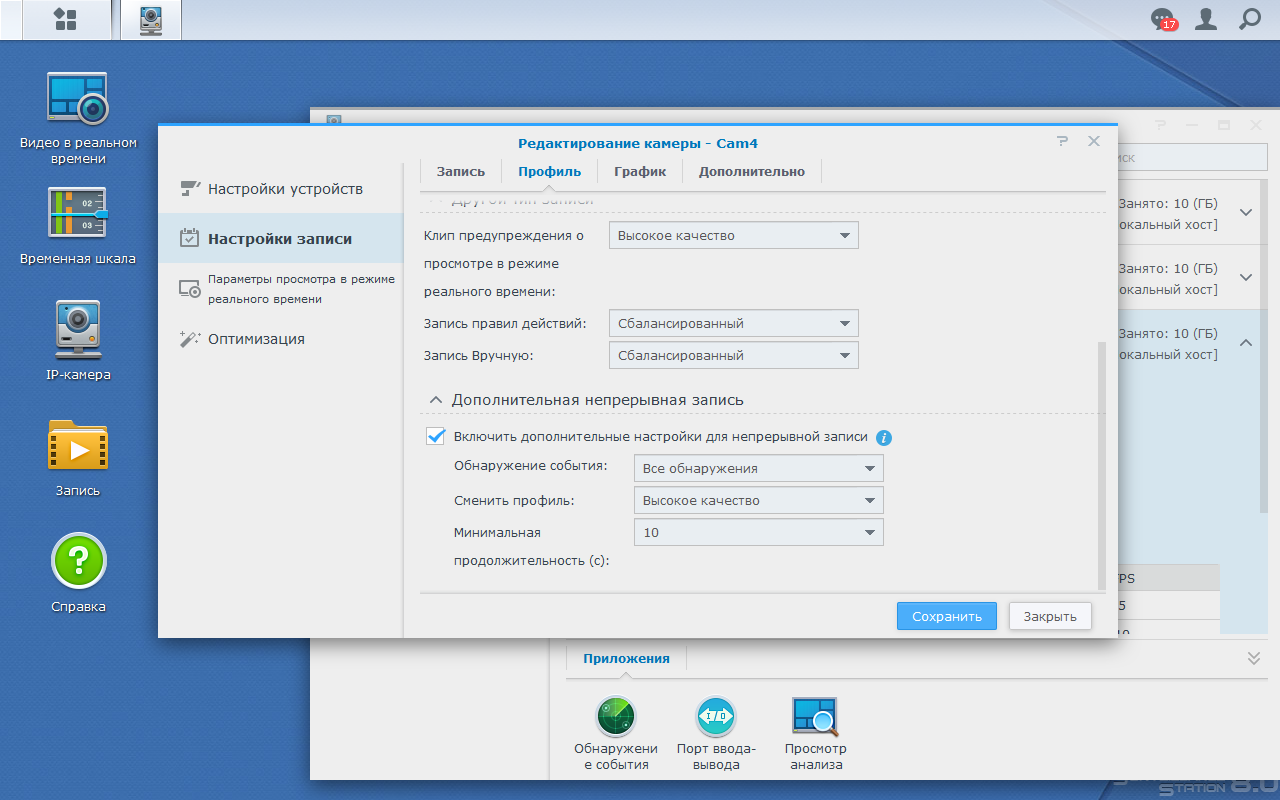 Также в сервисе был реализован сбалансированный режим записи архива. Администратор может настроить хранение тревожных записей, полученных при срабатывании детектора движения или других событий, в более высоком качестве. А остальные ролики непрерывной записи могут сохраняться с меньшим битрейтом для экономии дискового пространства.