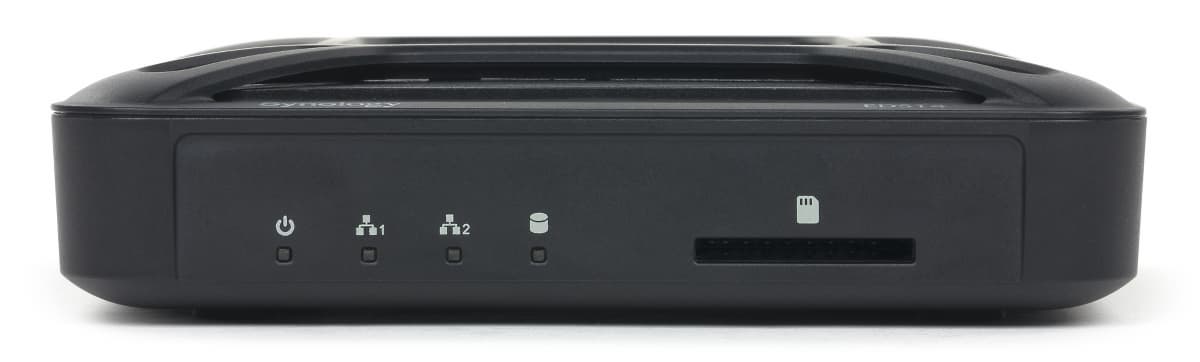 Работая исключительно с внешними накопителями, подключаемыми через USB, и картами памяти, EDS14 в то же время обеспечивает практически все функции и сервисы, характерные для DiskStation Manager — одной из лучших операционных систем для сетевых накопителей, разработанной компанией Synology.