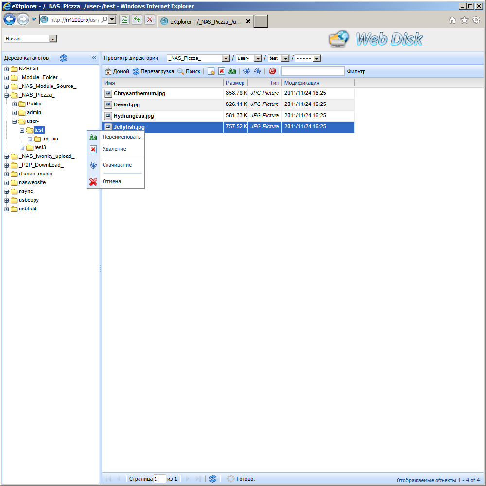 Традиционно Thecus старается не включать в основную прошивку много дополнительных функций. В частности в текущей версии штатно есть только Web-браузер файлов, сервер iTunes и фотоальбом. Браузер основан на программе eXtplorer и имеет все необходимые для этого модуля возможности, включая копирование, перемещение, загрузку и скачивание документов. Сервер iTunes ничем особенным не выделяется. Музыкальные композиции необходимо поместить в общую папку iTunes_music. Отметим опцию выбора кодировки тегов для файлов mp3. Фотоальбом также выглядит несколько странно, загружаются фотографии только через Web-интерфейс, им можно указать имя и описание, разделить фотографии по альбомам. Возможно разграничение доступа по имени и паролю пользователя. Но смотреть он сможет только свои фотографии.