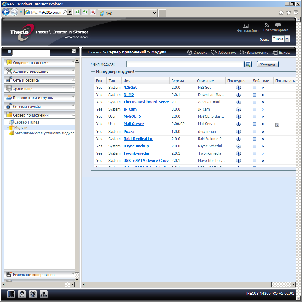 Со времени последнего тестирования производитель существенно обновил и программную начинку — в версии 5.x.x встроенной операционной системы появилось много новых возможностей, включая файловую систему EXT4, версию 4.0 протокола NFS, автоматическую установку дополнительных модулей. На сегодняшний момент, модель N4200Pro занимает верхнюю позицию в сегменте SMB у этого производителя.