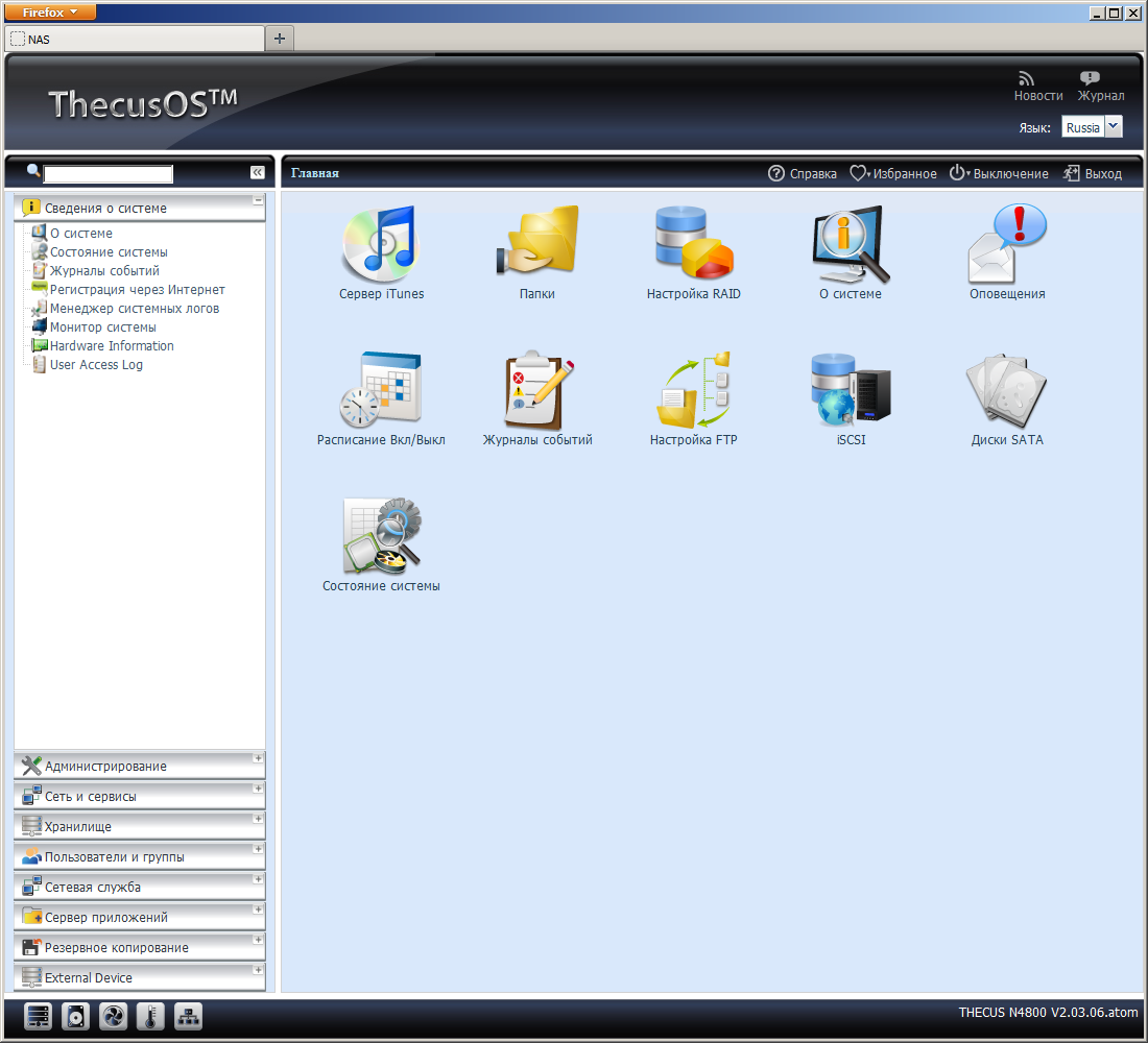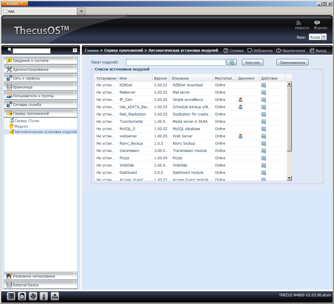 Как и другие производители сетевых накопителей, в последних версиях прошивки компания Thecus выделила большинство дополнительных функций во внешние модули. В базовой прошивке осталось только несколько утилит.