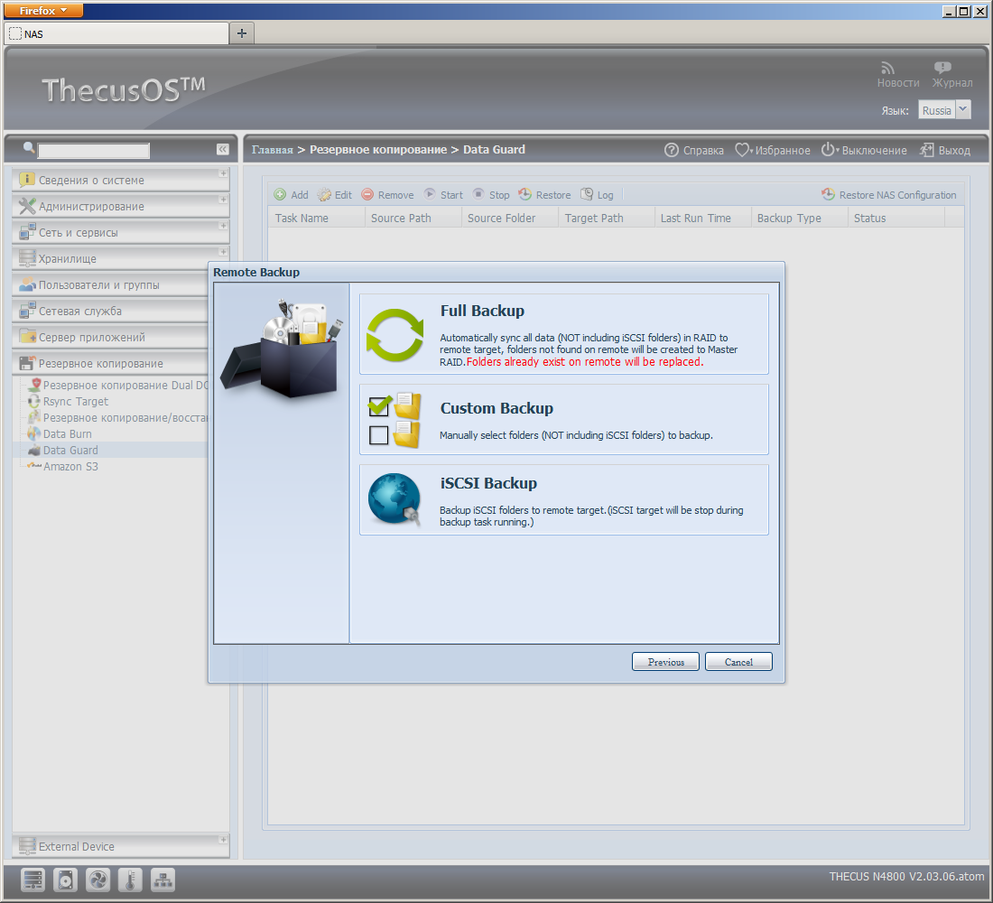 Интерес представляют и встроенные средства резервного копирования. Накопитель может выступать в роли сервера rsync или самостоятельно копировать и восстанавливать папки и iSCSI тома в разных направлениях. В частности, поддерживаются сценарии синхронизации двух устройств по сети, копирование между папками и внешними дисками, резервирование и восстановление iSCSI томов. Есть поддержка облачного сервиса хранения данных Amazon S3.