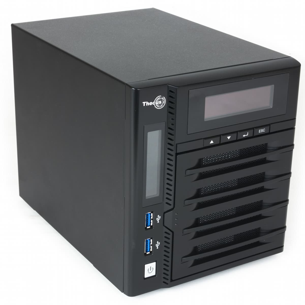 Thecus N4800 может похвастаться интересным набором портов для подключения внешних устройств: два USB 3.0 на лицевой панели, два USB 2.0 и один eSATA на задней панели.