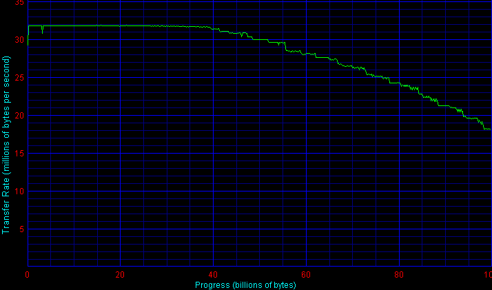 Скорость работы интерфейса Hi-Speed USB у TT Muse 2.5″ оказалась чуть хуже, чем у того же AgeStar IUB2O1 на ином контроллере, хотя и лучше, чем у внешнего USB-накопителя самой Seagate, а также некоторых других внешних дисков и контейнеров. Об этом можно судить и по графикам Transfer Rate (кликните по ним для просмотра полностью),