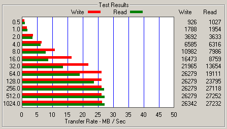 Интересно, что USB-диски вполне могут конкурировать по скорости с ATA-подключением дисков на самых мелких файлах 1 Кбайт, тогда как уже на файлах по 50 Кбайт внутренний диск оказывается вдвое быстрее.