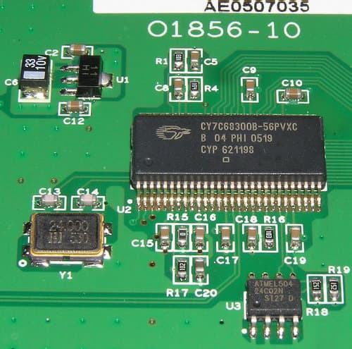 - Использует одну последовательную EEPROM, содержащую серийный номер USB устройства, идентификатор продавца, идентификатор изделия и конфигурационные данные