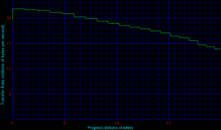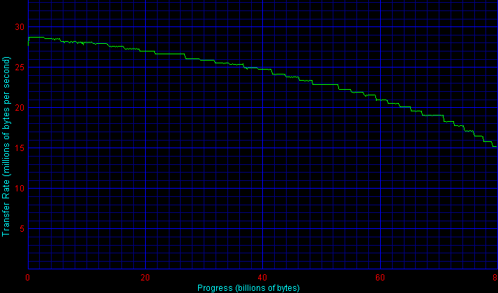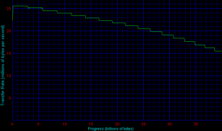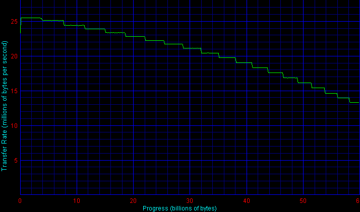 Здесь получаем классический случай идеального результата. Все как положено — диски расположились в соответствии с плотностью записи, модели одной линейки показали одинаковые результаты. Красота! Везде бы так.
