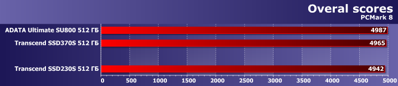 Как уже не раз было сказано, зачастую сегодня уже сложно различить производительность твердотельных накопителей существенно разных классов — поскольку «узкое место» находится не в них: требования ПО превосходят возможности механики, но с легкостью удовлетворяются любым SSD. Впрочем, если вооружиться тестами, небольшие различия в результатах найти можно. И они в целом не в пользу 230S — он из тройки испытуемых оказался самым медленным. Незначительно, конечно, но проигрыша SU800 мы не ожидали.